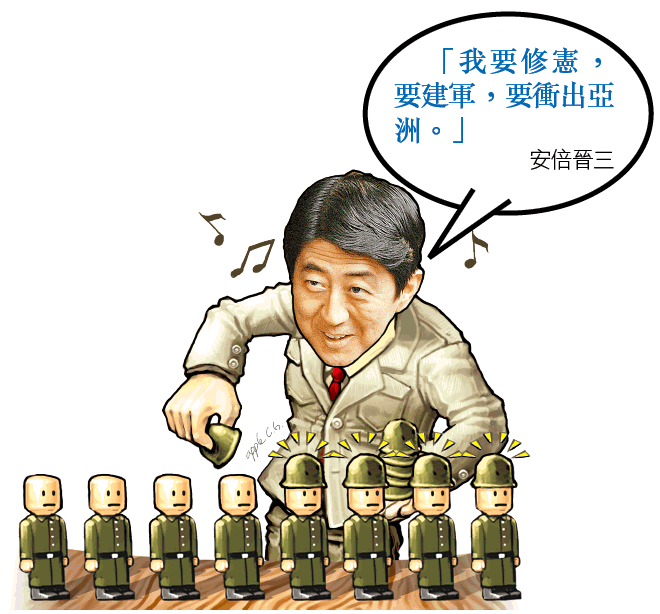 他做首相後鐵定今個月將防衞廳升格做防衞省,他此等鷹派下一步要煽動的,應該是將自衞隊變成自衞軍,參與盟國集體防衞,甚至發展核武。