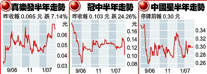 另外,真樂發控股(1003)亦宣布以大幅折讓價配售8.5億股新股,以0.04元配售價計算,較停牌前每股0.07元折讓42.9%。公司昨天復牌後,股價最多跌17%,收市後跌幅收窄至7.14%,報0.065元。除了配股外,公司又建議配售本金總額3400萬元的可換股票據,換股價同樣為每股0.04元;配股及發行可換股票據合共集資6800萬元。另外,集團建議每五股合併為兩股,每手買賣單位由2000股改為2萬股。
