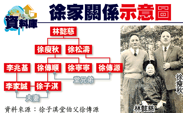 徐子淇去年嫁給恒基兆業二公子李家誠,成為富豪李兆基的新抱,婚前高調見報的子淇,有傳為了安胎而深居簡出,做其李家媳婦。一向視子淇如掌上明珠的徐爸爸徐傳順和徐媽媽彭雪芳,卻招來親戚怨言,子淇的堂伯父徐傳源向本報爆料,指徐傳順利用風水助女兒嫁入豪門。