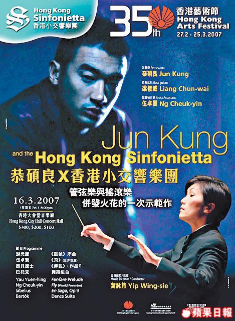古典與流行音樂的界線漸見模糊。與港樂、小交響樂團合作過的歌手如李克勤、葉蒨文、黃耀明、張信哲,至最近的側田,皆是唱家班。但這種交叉,每年總有幾次,焦點都落於流行歌手身上,近乎「濫交」的境地,似冷落了古典音樂的愛好者。今次小交響樂團交到恭碩良(Jun)這位搖滾樂人,宣傳海報用舊相,正要批評他們誠意欠奉之時,卻瞥見駐團藝術家伍卓賢為是次crossover特地創作新曲《飛》,令管弦樂與搖滾樂兩股音樂勢力將在三月中於大會堂音樂廳正面交鋒。