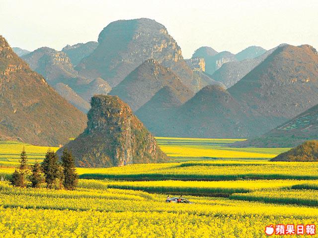 我,真的真的中了花毒,現在蠢蠢欲動,想到羅平,看多幾回金色的原野,對,說的是那個舉世知名的羅平油菜花節。每年的春節過後,羅平就成為了金色的油菜花海洋。沒有親眼見過,你絕不能相信自己眼前這片花海,我甚至相信世界再沒有一個地方有如此奇特的大海了。超過30萬畝的農田,全部被金黃色的油菜花所覆蓋着,風一吹過,花兒就翻起浪來,蕩起的波濤,將人都淹沒了。走上最著名的金雞山,不得了,花海壯闊得叫你目眩;然後一個個小山如小島似的靜靜地聳立着,隨着霧色淡了,一道太陽的金光照在花海間,泛起了閃閃光芒,花都披上了光環似的,閃閃爍爍,是真的令我歎為觀止!