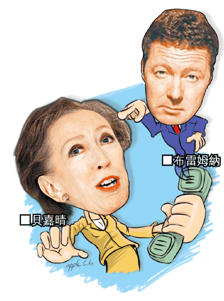 英國外相貝嘉晴(MargaretBeckett)被人翻舊賬。佢前年做緊環境大臣嗰陣,專整蠱政客嘅電視台藝人布雷姆納(RoryBremner),假扮財相白高敦(GordonBrown)把聲call佢。貝嘉晴認唔出,傾咗4分幾鐘,仲狂踩呢個官唔掂、嗰個官好屎,叫白高敦第日坐正,千祈唔好叫運輸大臣拜爾斯(StephenByers)返嚟做。不過貝嘉晴話唔記得有咁嘅事,咁耐咯,邊記得啫! 英國《獨立報》