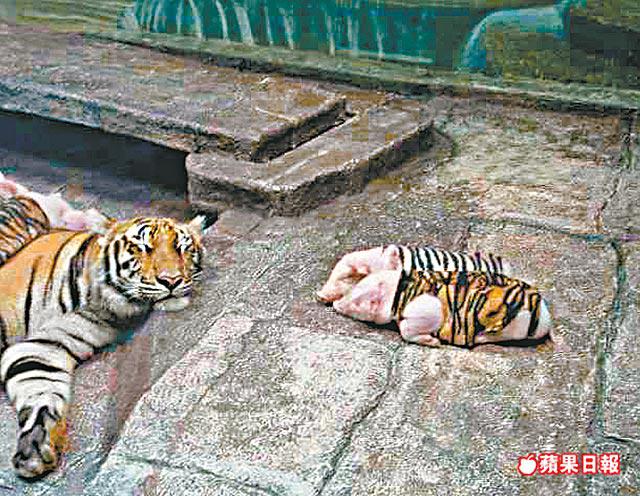 「扮豬食老虎」的事情大家聽得多,「豬扮老虎食老虎奶」你聽說過嗎?網上有兩幅題為「脫衣服就死定了」的照片,幾隻可愛的小豬穿上老虎斑紋的衣服,實行扮老虎仔吃老虎媽媽的奶,老虎媽媽不但沒有察覺,還慈祥地對待這些披着虎皮的「哎吔」仔女。