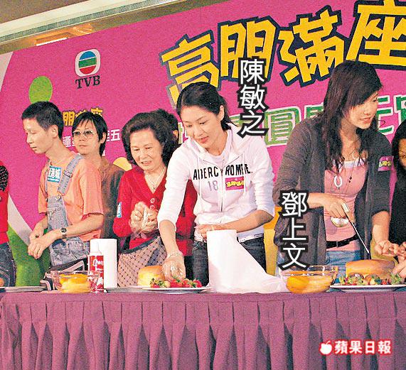 伍詠薇(伍姑娘)、苑瓊丹、陳敏之和胡定欣等,昨日在將軍澳出席《高朋滿座》活動,與現場觀眾玩遊戲,該劇將於周六(10日)大結局,伍姑娘稱大夥兒會到鄧上文家中慶祝。