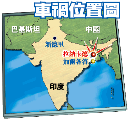 【本報訊】一個來自印度加爾各答的姓李的華裔家庭在當地遇上車禍,李氏一家六口昨日乘汽車到印度東部旅遊時與一輛貨車相撞,汽車上連當地司機共六人死亡,一名重傷幼童被送醫院搶救。