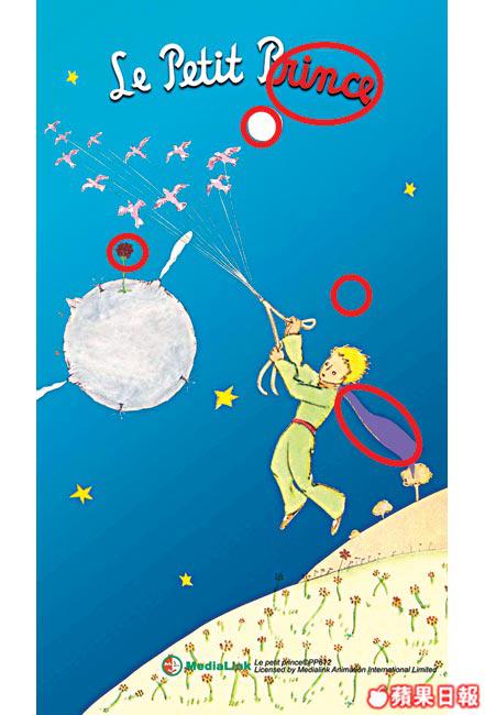 小王子只有一個人在B612星球,唯一陪着他的就是玫瑰花,但大家鬧翻了。小王子毅然去宇宙大冒險!請圈出圖中5個不同的地方。