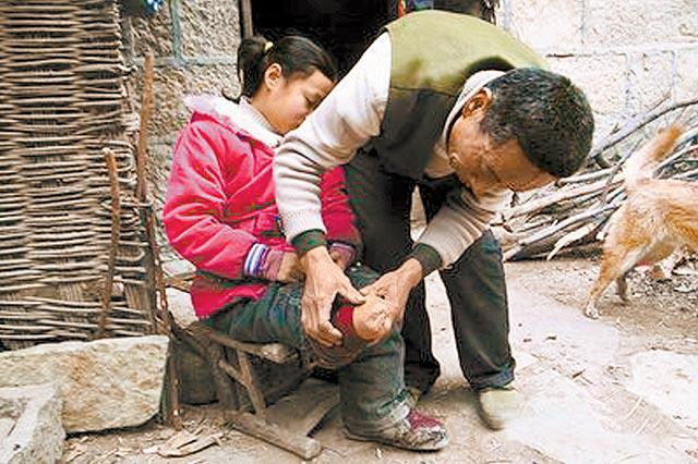 據《河南商報》報道,小艷麗和養父母居住在河南鄭州鞏義市涉村鎮紅河村後武當山一個簡陋的院子,由於沒錢治療,她自去年9月開始,右腳已徹底腐爛了;加上小艷麗患有先天性脊椎缺失,引致大小便失禁,冬天也只能穿開襠褲。