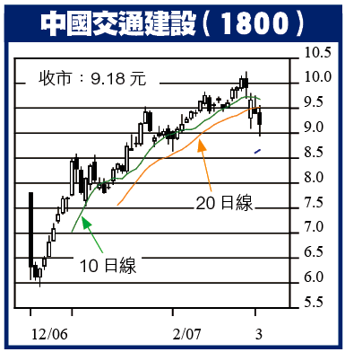 在這些股份當中,株洲南車(3898)的跌幅最大,上周五下跌7%,其次為錦江酒店(2006)、中國交通建設(1800)、中海石油化學(3983),由於這些股份行業不盡相同,相信並非相關政策上改變而令股價突然下滑,暫時亦未見公司本身的基本因素出現改變。相反,由於這些「半新股」現價仍遠高於招股價,而近日跌市當中,它們的表現仍相對偏強,若與其他近日已急急調整的股份比較,它們的估值顯得更高,因而亦成為沽貨獲利的對象。除了小部份早前於高位入市者之外,持有這些股份的投資者仍多是獲利貨,因此,短期難免續有5%至10%調整,其後股價料亦需進行整固,因此,以短線投資心態而入貨的話,可考慮先行計數離場,但筆者對這類優質股前景仍有信心,中長線投資者可續持有,若股價進一步調整,也是入市時機。