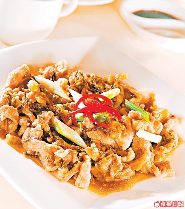 1.甜梅菜先細切,撈油及糖各少許,炒3分鐘待其入味。