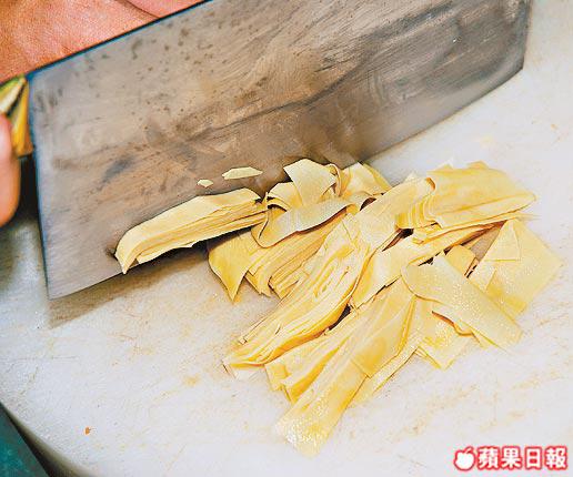 1.先用暖水浸腍百葉,然後切絲備用。