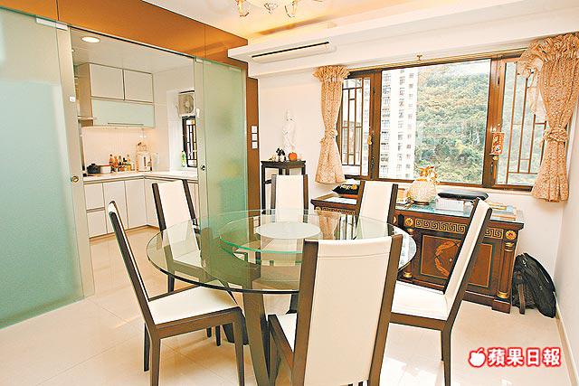 這個高層B室,放眼可見維港,十分開揚。客廳原約15呎闊,遂撥出3呎闊空間,偷位建工人房及開設氣窗,予女傭休息。廚房改入口在飯廳,安裝玻璃趟門,與飯廳組成用膳區。3房寬敞,可放多組家具,布局輕鬆,盡顯實用率高達九成的強項。戶主入住不足1年,全屋裝修簇新,設計新穎時尚。