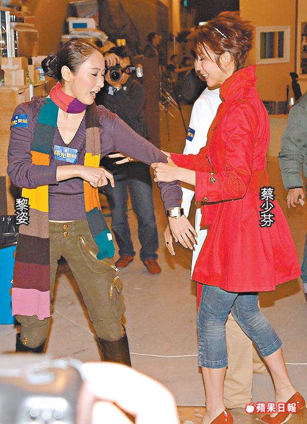 每逢有女演員群戲多的劇集開拍,例必有不和傳聞,早前便有雜誌指黎姿在拍劇期間經常補妝,令同劇的蔡少芬黑面苦等。昨日三位女主角見大批記者在場竟然扮不和,陰招盡出,起腳、拉手拉腳兼互相單打。