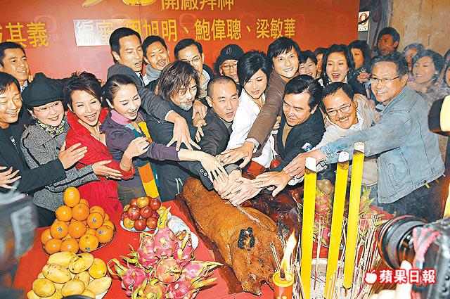 黎姿、蔡少芬(Ada)和邵美琪等昨日在將軍澳電視廣播城出席80集長劇《珠光寶氣》的拜神活動。Ada和邵美琪均穿戲服,惟獨黎姿出動私伙羽絨外套和長靴搶鏡。
