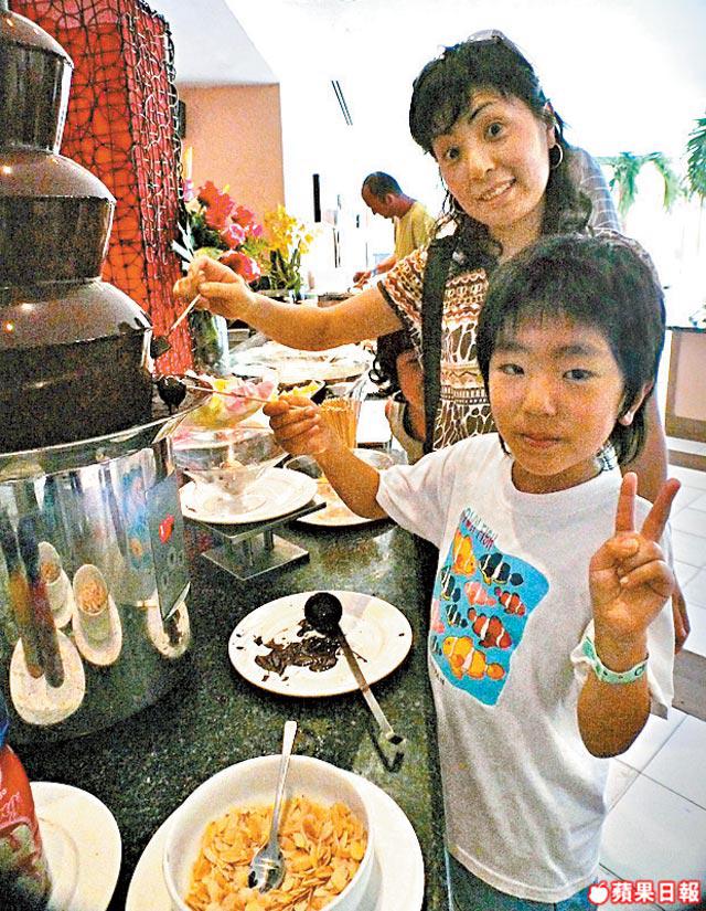 玩到媽咪有時嚟叫我去食飯我都唔想去,不過,餐廳的自助餐真係好好食,日日都有好多唔同的好食豬扒、牛扒或者漢堡包,又有好多蛋糕、雪糕、朱古力,樣樣我都鍾意,唔使媽咪迫我都肯食;爹哋媽咪日日都讚話啲嘢好食好新鮮,我哋餐餐都飽到唔郁得咁滯。