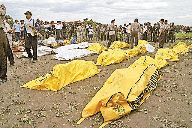 印尼似乎被詛咒了,前天(周二)才發生6.3級地震造成至少83人死亡,昨天早上又發生空難。一班由首都耶加達飛往日惹(Yogyakarta)的客機,懷疑降落時超速,前輪爆胎,引起爆炸和大火,至少活活燒死23人。因籌備和採訪澳洲外長唐納(AlexanderDowner)訪印舉行反恐會議的10名澳洲官員和記者,也搭上這「死亡班機」。