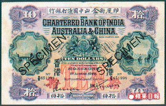 社會背景:香港開埠數年,首次發行10元鈔票