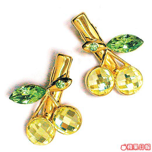 淺黃色櫻桃閃石髮夾,配綠葉好cutie。每對$115