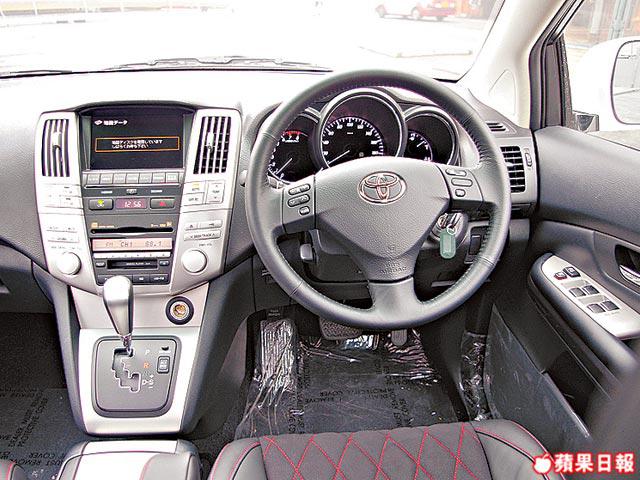 這部裝有Zagato包圍的ToyotaHarrier,造型跟普通版或自家改裝的款式比較,確實有更濃厚的跑車氣息;皆因鬼面罩及頭尾泵把,皆換上跑車化設計的同時,車身兩側亦變成頗有肌肉感的拋沙板設計,襯以四輪18吋金色Zagato跑車合金胎軨,頓時變得很Sporty。車廂方面卻沒有多大改動,車子最大賣點的天幕式車頂,你仍可在這部特別版身上找得到,但前後兩排座椅卻換成半皮半麖皮鋪排,並鑲有紅線及格仔紋作配襯,坐得舒適之餘也有不錯的觀感。