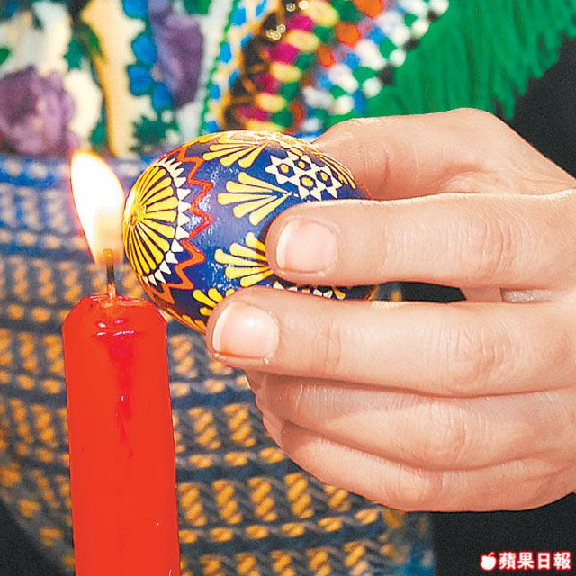 使用的工具非常簡單,以鵝毛剪成不同形狀當作沾上蠟的工具。把染好的彩蛋輕輕用火烘一烘,再用紙巾一抹,就可以確保表面光亮不褪色。