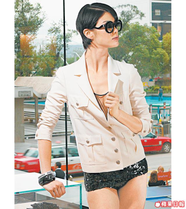 四袋款式的軍褸Jacket,是當初CocoChanel大膽以男士外套為靈感的設計,型格十足。而珠片超短熱褲,則是CHANEL今季標記Item之一。