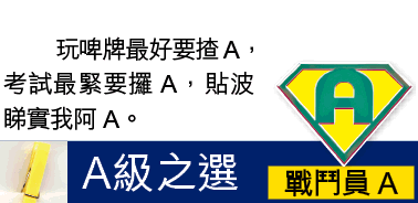 玩啤牌最好要揸A,考試最緊要攞A,貼波睇實我阿A。