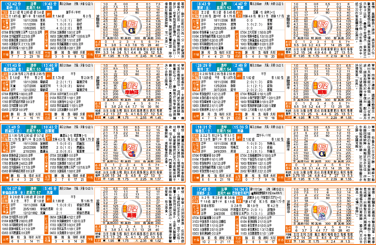 讓球:星期六53摩納哥(平)、星期六57馬賽(平)