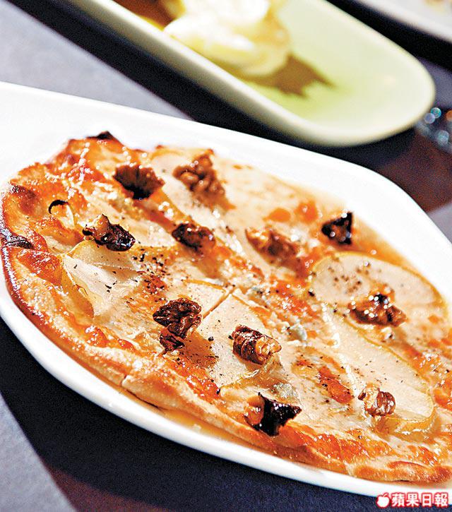 她們最喜歡的菜式,芝士味香濃,最特別在其創新,「上面有梨同合桃,平時好少用嚟做Pizza餡料,第一次咁樣食,有『叮』一聲之感。」花苑說。餐廳大廚Joe指,餐廳選用中國合桃,全用人手剝殼,有獨特甜味。