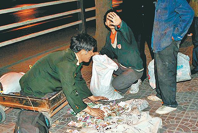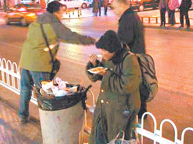 「我要人民幣,一角二角我不用!」一名被網民稱為「最牛」(巴閉)的乞丐,態度囂張,狂言拒收一角二角;然而,在一張叫人痛心的相片,全國著名商業街北京王府井一片昇平,婆婆寒夜瑟縮。留言者說,垃圾桶是婆婆的飯桌,垃圾桶的冷飯菜汁是她的晚餐。「垃圾飯」她沒嫌棄,她吃得狼吞虎嚥,她要的只是一頓殘羮剩飯。