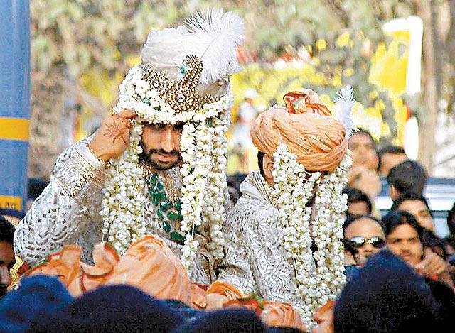 超過1,000名影迷在阿比謝克巴山家族兩間豪宅外守候,希望一睹兩人風采。400名私人保安,加上500名警察,在男家和女家住所外密密駐守,避免婚禮受到影迷或狗仔隊騷擾。兩人的婚禮由下午開始,新郎阿比謝克巴山騎着白馬,在家人、祭司和樂師的陪同下,由大宅浩浩蕩蕩前往家族另一所豪宅、名為「等待」的婚禮場地迎接新娘。