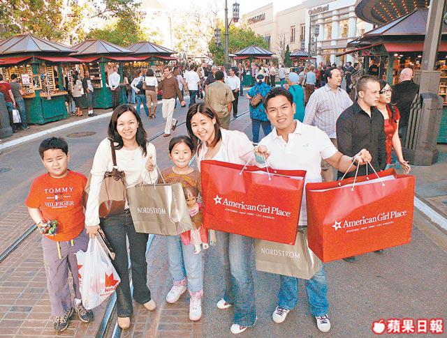 這個在市區、舒服、好行又交通方便的大mall──TheGrove,呢5年在洛杉磯已經是市民假日常到的消閒地;我們到訪當日是星期六,未到中午便已有一家大細殺到。在入口處的「小鎮大街」,遠遠望到裏面的大鐘柱,確實有到廸士尼的感覺;下午3、4時,更加人山人海,每個人面上都帶着笑容,手上一袋二袋,家庭樂兼掃貨的氣氛很熾熱!