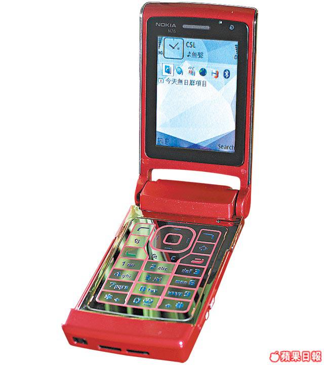 身為NSeries一分子,功能自不然成HotTopic。N76與上星期發布嘅N95,路線好唔同,N95着重全面性,幾列入發燒級玩家範疇;而N76則主攻傳統玩家最渴求嘅影音分唇,機面配置3粒音樂專用掣,除咗聽歌唔使專登揭蓋,面芒仲顯示到歌名同播放時間,資料詳盡;反轉機背則配置200萬像素相機連閃燈,㩒一下側邊嘅快捷鍵,即進行拍攝;而面芒及裏面嘅2.4"QVGA芒,同樣可變為取景器,真係攞起手隨時玩得。