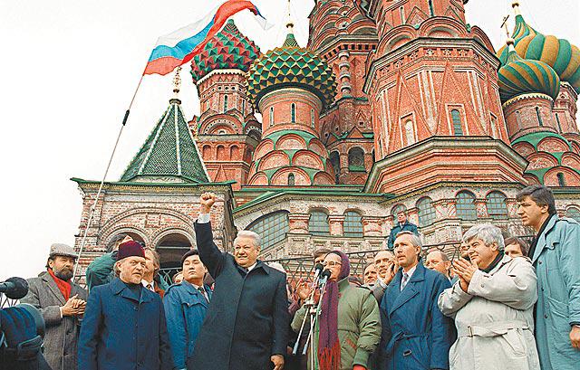 銳意推行政改的戈爾巴喬夫,原定於1991年8月20日簽署新條約,給予蘇聯15個加盟共和國更大自治權。但在簽署條約前一天,前蘇共強硬派發動政變,將他軟禁在其黑海別墅。當時葉利欽將俄羅斯聯邦大樓改為反政變總部,並發動群眾與士兵對峙,他更登上蘇軍坦克講話,號召民眾上街,結果政變維持三日即告終,戈爾巴喬夫復職。