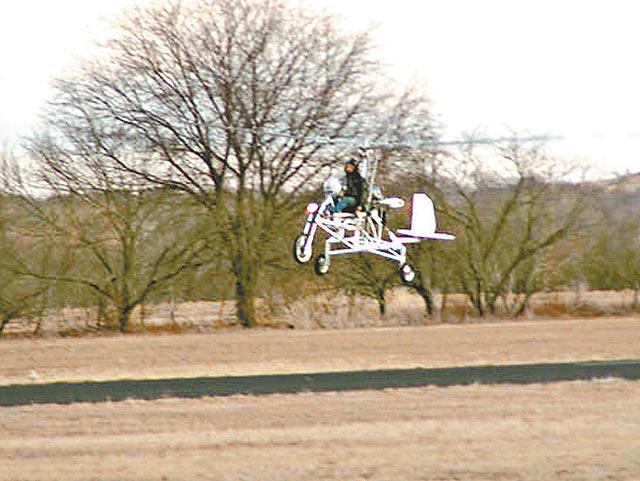 超級飛天電單車的旋轉翼可以摺叠,能升到2,100米高空,並以時速120公里飛行兩小時也不用添加汽油,只要有6米長的空間就可以降落;萬一引擎在空中失靈,它可像直升機一樣「滑翔」,安全着陸。在陸地行駛的話,時速也達到88.5公里。