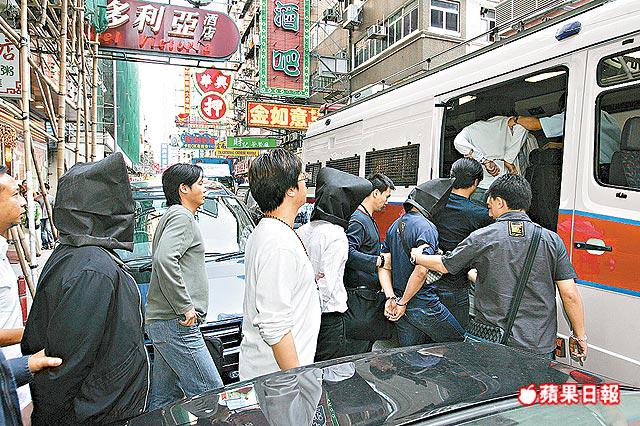 日前,旺角警區反黑組接到線報,獲悉控制近百家淫窟的標頭與其得力助手,選擇砵蘭街一家茶餐廳做為聚腳點,並在茶餐廳內收藏武器。昨下午2時許,逾20名探員帶備黑名單採取突擊行動,將茶餐廳包圍後,當場將標頭,及其助手鐵頭、阿基等合共七人拘捕。