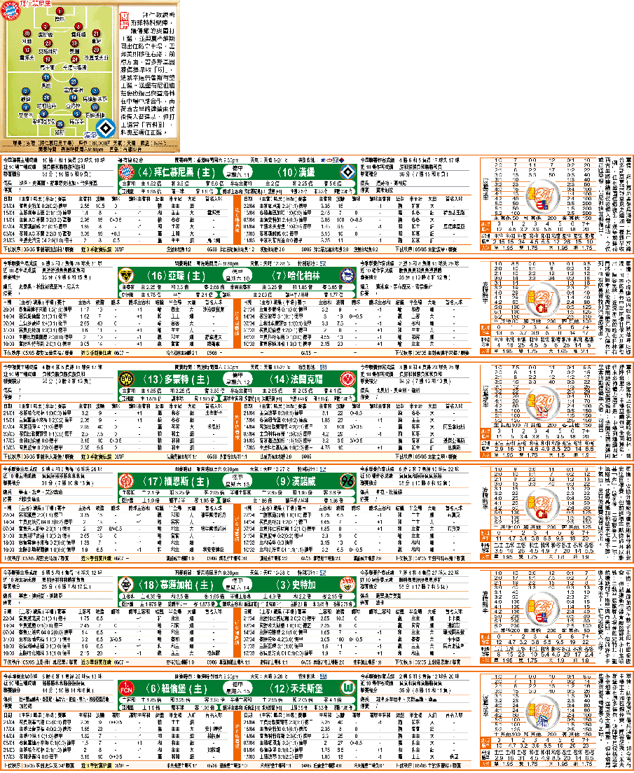 現排第4的拜仁今屆表現跌watt,幾可肯定衞冕聯賽冠軍無望,現時目標是打入前3名以出席下屆歐聯。今於主場對漢堡,雖有「德國孖寶」舒韋恩史廸加及普多斯基因傷缺陣,但像沙歷咸美斯、雲邦美及馬卡爾等具入球能力球員可披甲,加上有主場之利,不難攻破漢堡。拜仁攻力雖強,不過防守卻差,門將簡尼老化,一對中堅雲拜頓及盧斯奧輕出,整條防線表現最穩定的沙洛則因傷缺陣,故對漢堡隨時會失波。漢堡前線以荷蘭球星雲達華治作重心,並由馬達維基亞、蘇連及查洛林等好手支援,攻力絕不在拜仁之下。是役入球「大」有1.95倍,值得捧場。