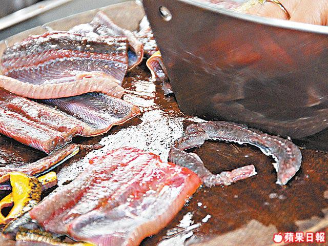 醃料:鹽1/8茶匙、蛋白1茶匙、生粉1/2茶匙、胡椒粉少許
