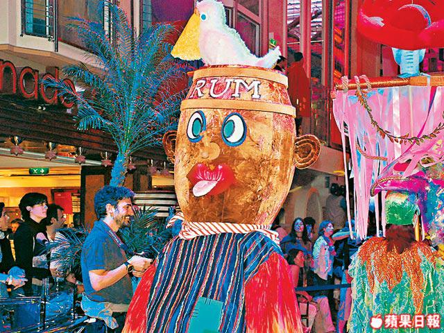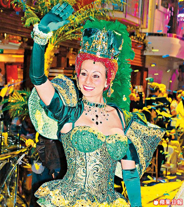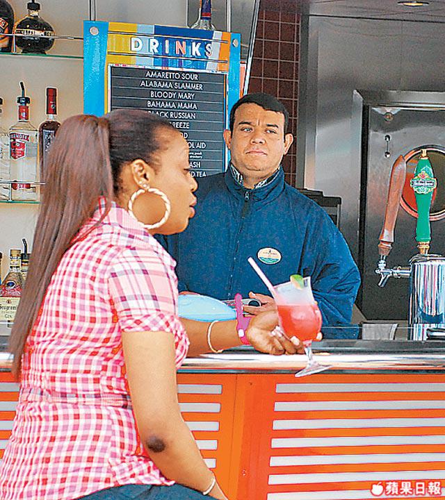 今趟上船認真賺晒,事關我至愛的Ben&Jerry's雪糕可以任食,而且仲有名牌pizza,Sorrento'sPizza任食,在香港叫一個都要幾百蚊啦,好開心!由於今次是pre-cruise,所以就freeofcharge,到真正歎世界之旅時要收費,不過就$10左右一個雪糕球,點計都抵啦!如果半夜肚仔餓的話都有一間24小時開放的咖啡室CafePromenade,西式麵包曲奇餅任食,本人推薦Doublechocolate,朱古力香到不得了,我一口氣吃了四片手掌般大的曲奇呢!其實在Liberty搵食一點也不難,五樓的cafe提供自助餐,還有十六間酒吧,想買醉話咁易。除了狂吃糕之外,最叫我滿意的是位於船尾如歌劇院的主餐廳,提供歐陸式餐飲,是唯一一間由頭到腳都有人服侍的餐廳,由入門口開始已經覺得自己高貴不少,坐在窗邊位置更可欣賞水天白雲的景致,這一刻認真無價!對貪吃的我來說這趟郵輪之旅絕對是增肥團,不知道回家老爹認唔認得人呢?