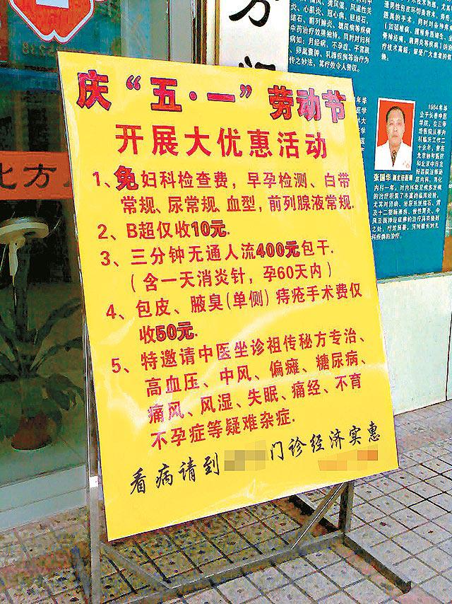 「不知不覺中悄悄流走……」、「就像悄悄睡了3分鍾……」、「人工流產術手術費80元」、「三分鐘無痛人流400元包亁(全包)」。「五一」黃金周原意讓勞動人民好好休息,但深圳多家醫院竟不放過此挖金的機會,一窩蜂推出真情墮胎優惠計劃,並發動龐大的廣告攻勢:在電視黃金時段發動密集式宣傳、免費派發宣傳單張、雜誌等,令當地市民不勝其煩,大喊「真係好討厭﹗」之餘,亦令在深圳工作的港人感到不齒,「簡直是世風日下,道德淪亡!」 本報記者深圳報道