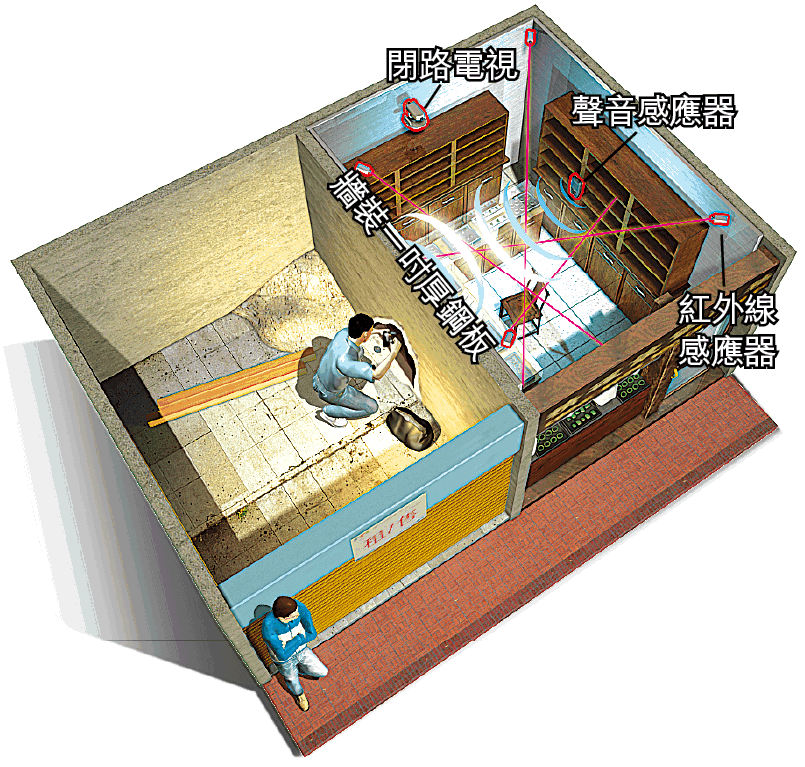 「上次損失慘重後聽取警方意見,除在三面牆安裝一吋厚鋼板外,更陸續加裝先進設備包括閉路電視、紅外線感應器同聲音感應器,全部接駁到我附近屋企同警署,收咗舖亦可以監視住,18年嚟再冇出事啊!」姓郭東主講述緣何會將店舖變成銅牆鐵壁的原因。