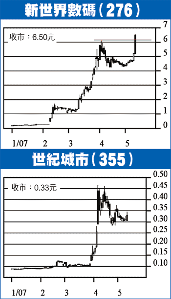 即將改名為「蒙古能源」的新世界數碼(276)上周五股價狂升24%再創新高,比同聲同氣嘅金匡(286)升幅23%更高,似乎唔係配角,而係主角。新數碼自公布變身能源股後,在過去短短4個月,市值已由4.7億元暴增至170億元。