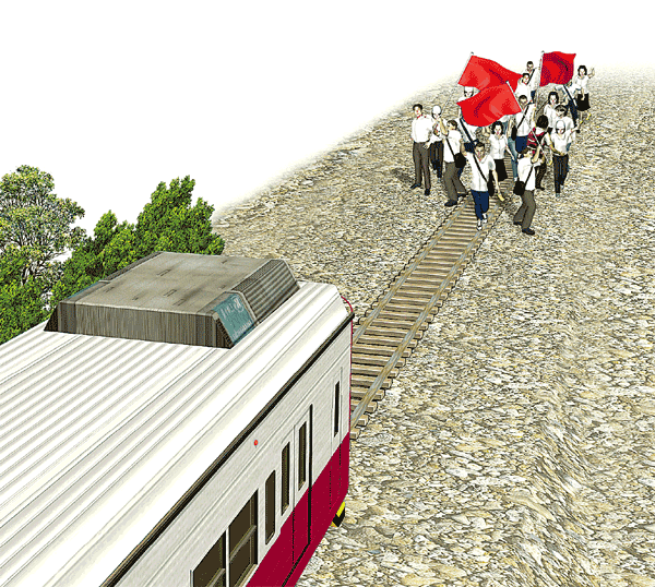 學生霸佔路軌攔火車示意圖