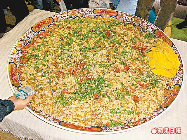 「咁大鑊?」就係咁大鑊!網友最近在香港討論區張貼了一系列「日式大鑊飯」製作過程的照片,僅那隻盛飯的碟子,直徑就約有1.5米。照片從「裝飯上碟」、「鋪上豬扒」、「添加佐料」、「灑上葱花」等程序都交代得一清二楚。既有網友說:「見到好想食呀!」也有網友稱:「睇見就飽喇!」