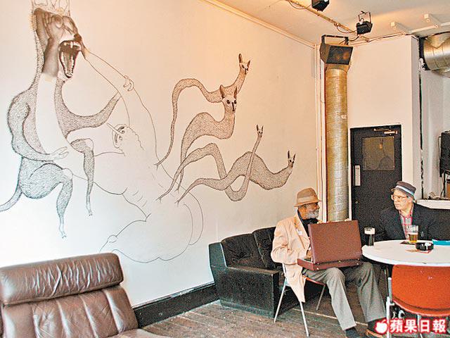這裏不但是一個藝廊,每隔2-3個月就會轉換1次,藝術家的作品除了被裝裱後掛在牆上,亦有些索性利用內裏的白牆,直接畫上去,所以不同時候來訪,亦會有新鮮的發現。最近展出的是AndrewJamesJones的畫展《CarpetBurns》,以幼細線條把動物抽象化,有些會看得令你會心微笑。