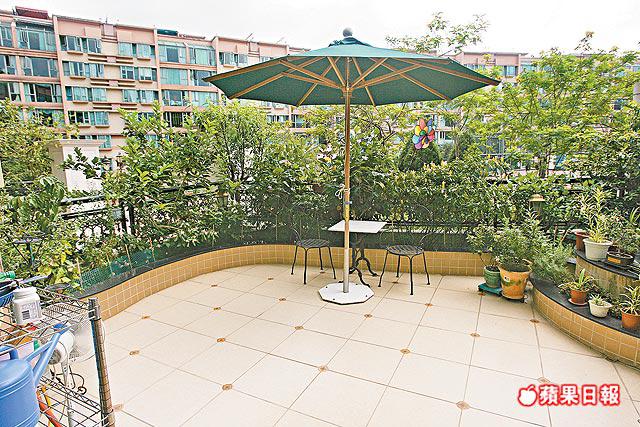 《強項》大埔帝欣苑單位以內櫳寬敞見稱,介紹的1樓連平台單位,還擁有戶外空間,沿圍欄種滿矮樹,並建弧形花槽,擺放花卉盆栽,饒富綠意生氣。