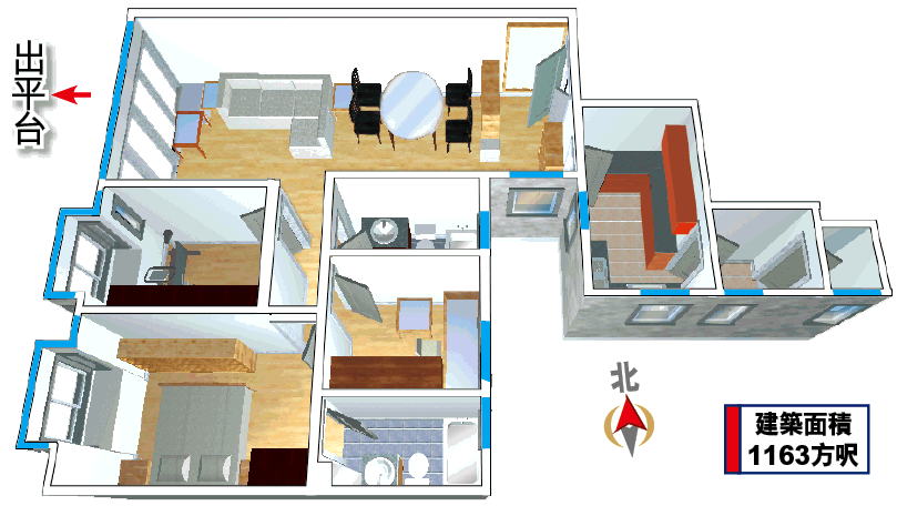 單位1163方呎,客飯廳四正闊落,家具擺放鬆動,又有充足的活動空間。3房夠大,毋須拆牆擴建,地方亦見使好用,擺位可隨心所欲。廚房通道闊,下廚倍覺得心應手。此外更設工人套房,傭人有獨立休息空間及淋浴室。