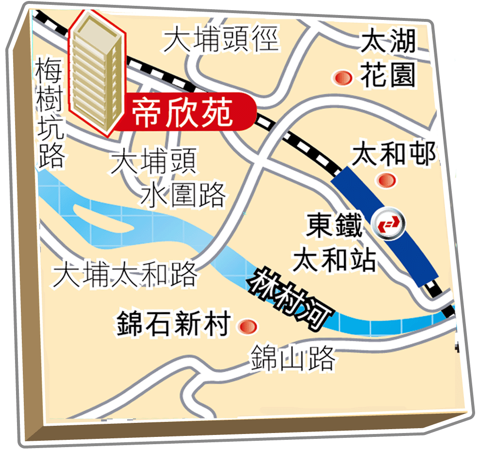 設施:停車場、平台花園、會所及住戶專車穿梭東鐵太和站及大埔市中心