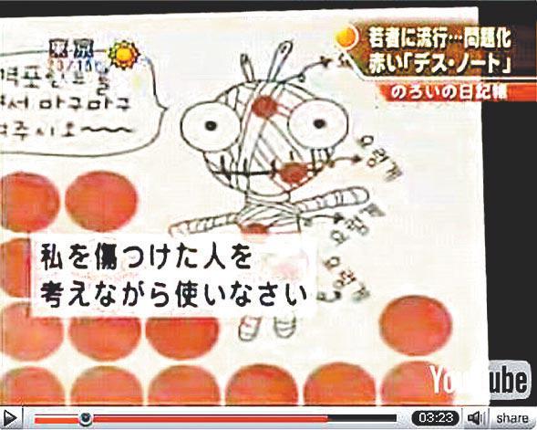 在日本漫畫及電影《死亡筆記》中,若將一個人的名字寫在黑色的死亡筆記本上,那人必死無疑。南韓出版商最近推出一本《紅色筆記》,聲稱若寫上仇人名字和詛咒對方會遇到恐怖事,那麼詛咒就會應驗。邪門玩意,在教育界響起警號。