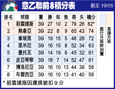 祖雲達斯在意乙僅打滾10個月後,來季將重返意甲逐鹿中原,擴軍事在必行。然而,當「老婦人」準備強勢回歸,門神保方卻暗示會功成身退,另謀發展。