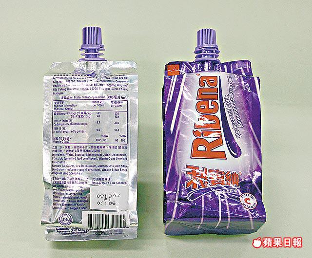 樣本評價:利賓納light清淡味黑加侖子飲品合乎低糖規定,但糖份含量超過成年女士每日所需