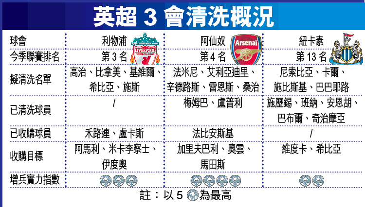 十年人事幾番新,惟英超競爭越趨激烈,各大球會的管理層已沒耐性等「10年」才把球隊翻一番;已晉身歐聯決賽的利物浦領隊賓尼廸斯,更在決賽鬥AC米蘭前夕,表明來季大清洗,陣容肯定面目全非,難道不怕影響軍心?